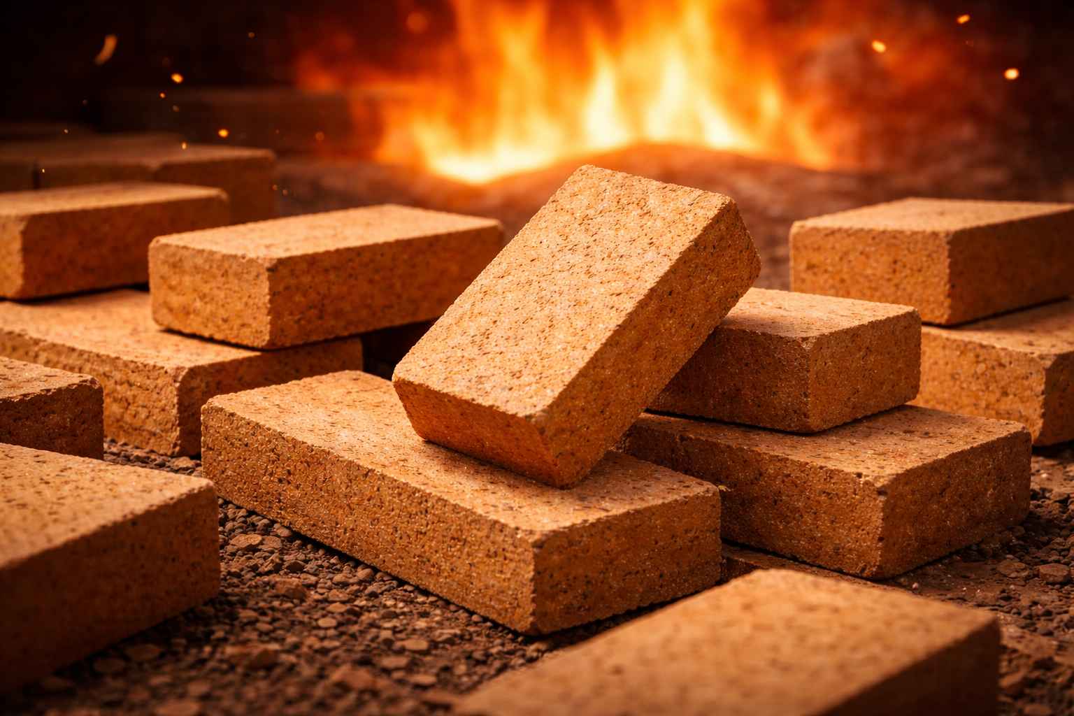 خشک کردن و پخت نهایی: آجرها در دمای ۱۲۵۰ تا ۱۵۰۰ درجه سانتیگراد پخته میشوند تا مقاومت حرارتی و مکانیکی بالا حاصل شود.
